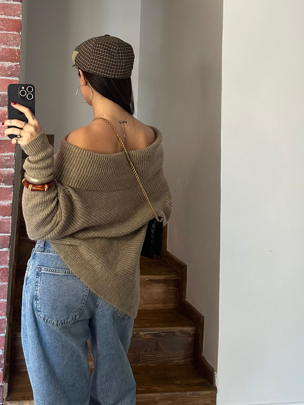 Dik Yaka Kahverengi Tek Düğme Tasarım Ceket